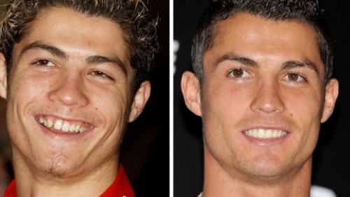 When it comes to A-listers in the soccer world, looks are just as important as skills (hello, David Beckham! And here’s just another uber-fit superstar of the soccer world who understood that in order to date all the models (hi, Irina Shayk!), plucked eyebrows, perfectly shaved face, flawlessly tanned, glowing skin and crisp white dentures are simply just as important as a faultless set of defined muscles. Ronaldo went through quite a transformation since his younger days, when he used to rock not only off-white teeth, but also bleached highlights.