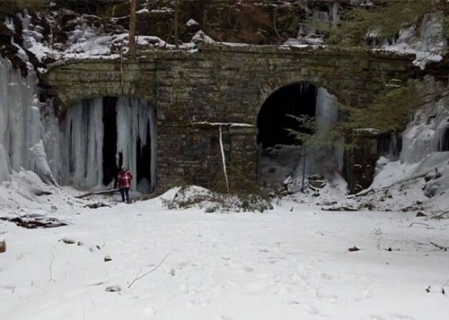 Two friends went backpacking up a trail during winter. They blindly went through the woods with no maps and no visible trail and stumbled upon this abandoned train tunnel. Fueled by their need to explore, the two men stepped into the tunnel, but their stay was quickly cut short when they saw a group of bats hanging above the tunnel roof. It was so creepy and resembled a scene from a Batman movie. The second tunnel was a little less spooky, but they decided against going further into the tunnel with no end in sight.