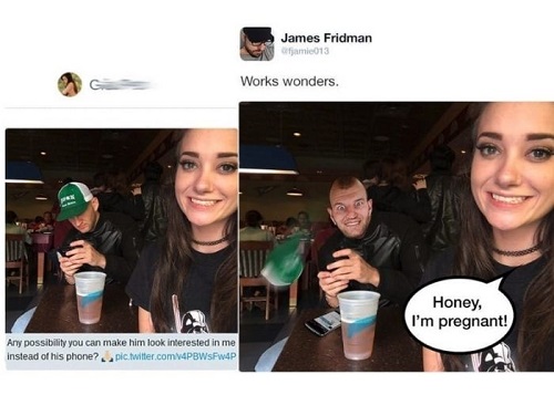 Dates present the perfect opportunity for two people to better know each other, work out their differences, or build their relationship. There is no worse feeling than being on a date with someone who’s always on their phone. Not only is it irritating, but it’s downright disrespectful. This woman wanted to have a photo moment with her boyfriend, who seems less interested in whatever her woman was up to. James did his thing, and we are impressed by just how effective the speech bubble was.